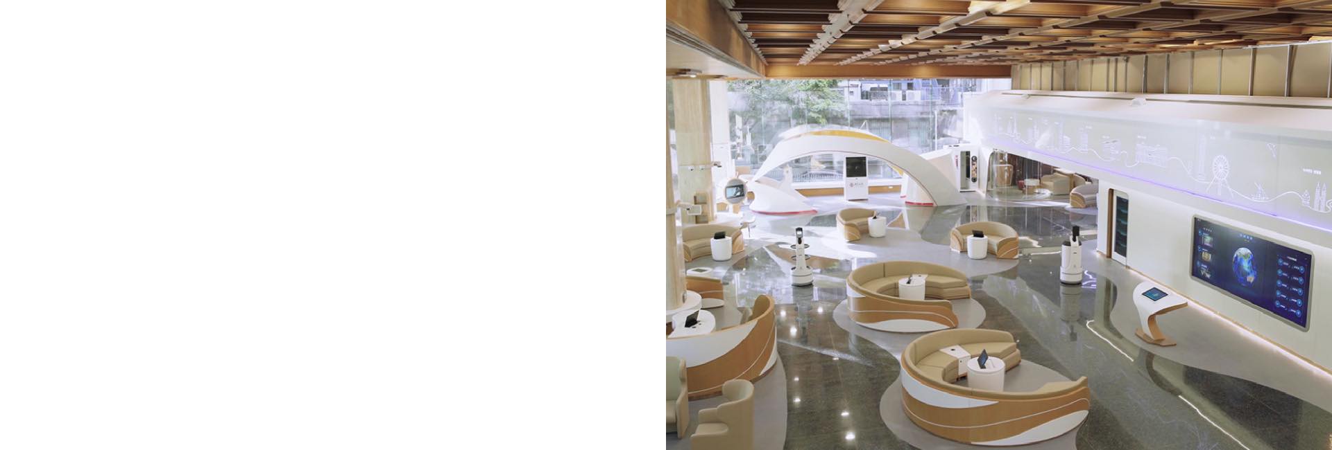 器人服务; 售楼机器人可以与客户进行趣味交流互动、为客户递送饮品、带领客户参